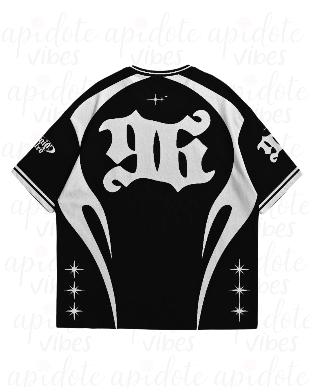 A bold mix of retro goth lettering and cosmic silver accents, this drop is more than clothing — it’s a collectible. Designed for those who move different, this oversized jersey is a flex you won’t find twice.
