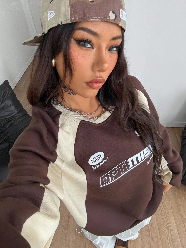 OPTIMISM means looking at life with hope, positivity, and confidence — and this sweatshirt is designed to express that warm, uplifting vibe. The TerraTone color palette blends rich brown and beige shades, giving it a calm, earthy aesthetic that matches perfectly with the meaning behind the word.